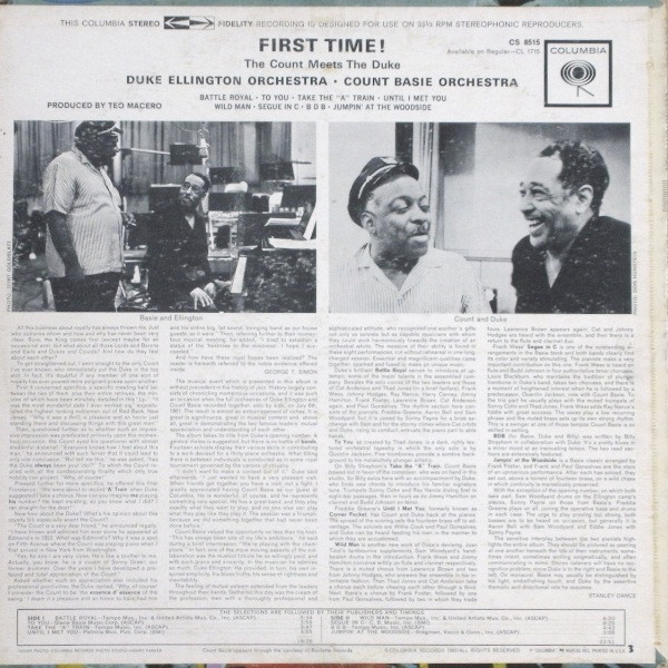 A battle of the bands? Not quite — more like a mutual admiration society, with the orchestras of both jazz titans playing together. (The Duke is heard on the right side of your stereo/headphones, the Count on the left.)