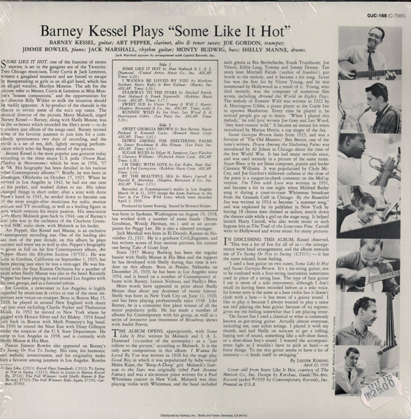 The release of the movie Some Like It Hot served as a good excuse for guitarist Kessel to join together with Art Pepper (switching between alto, clarinet, and tenor), trumpeter Joe Gordon, pianist Jimmy Rowles, rhythm guitarist Jack Marshall, bassist Monty Budwig, and drummer Shelly Manne to interpret a variety of vintage numbers, most of which dated from the 1920s.