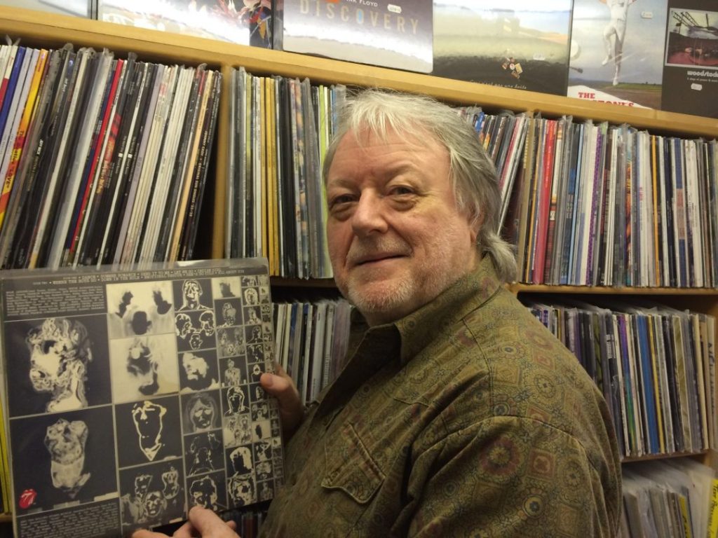 Below you will see Chris Kimsey holding up a copy of Emotional Rescue, not one of his better efforts.