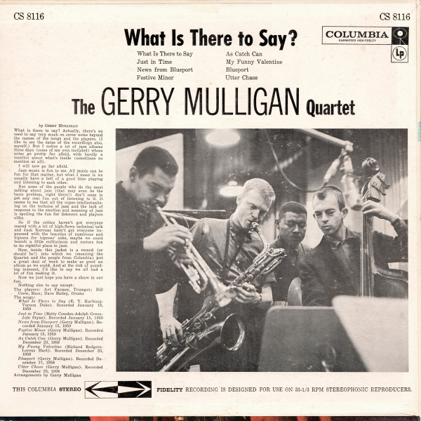Virtually every selection is memorable, with “What Is There to Say,” “Just in Time,” “Festive Minor,” “My Funny Valentine,” and “Utter Chaos” being the high points. Highly recommended both to Mulligan collectors and to jazz listeners who are just discovering the great baritonist.