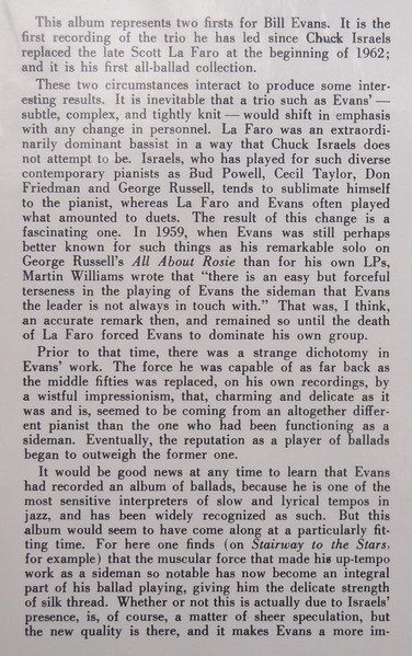 - The first album Evans recorded after Scott LaFaro’s death and it is a deeply immersive experience