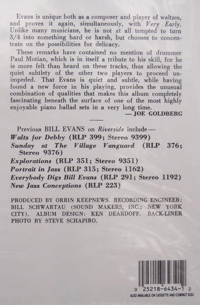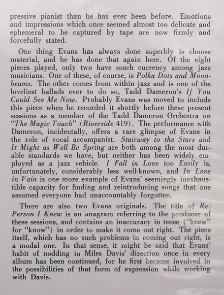 - This Riverside recording of Evans’s 1962 classic pressed on fairly quiet OJC vinyl boasts solid Double Plus (A++) sound or BETTER from first note to last