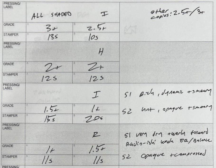 What you see above is the complete stamper sheet for a shootout we did recently. Note that the album you see pictured at the top is not the record we did the shootout for.