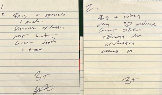 Big and spacious and rich / Dynamic orchestra / Not hot / Great depth and room