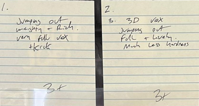 As you can see by the notes for a different, but equally good copy below, many aspects of the sound caught our attention on side one of this particular copy. (It turned out to have unacceptable amounts of noise on one of its side, hence the 2-pack.)