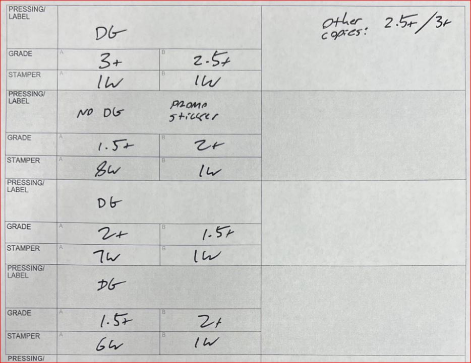 No, sadly for us, that glorious sound could be found on one and only one pressing, the one we graded 3+/3+.