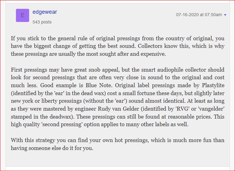 One hopes that before too long these folks will recognize that all they were doing was buying junk vinyl from the grifters exploiting the lo-fi and mid-fi crowd while pretending to appeal to the higher end of the market.