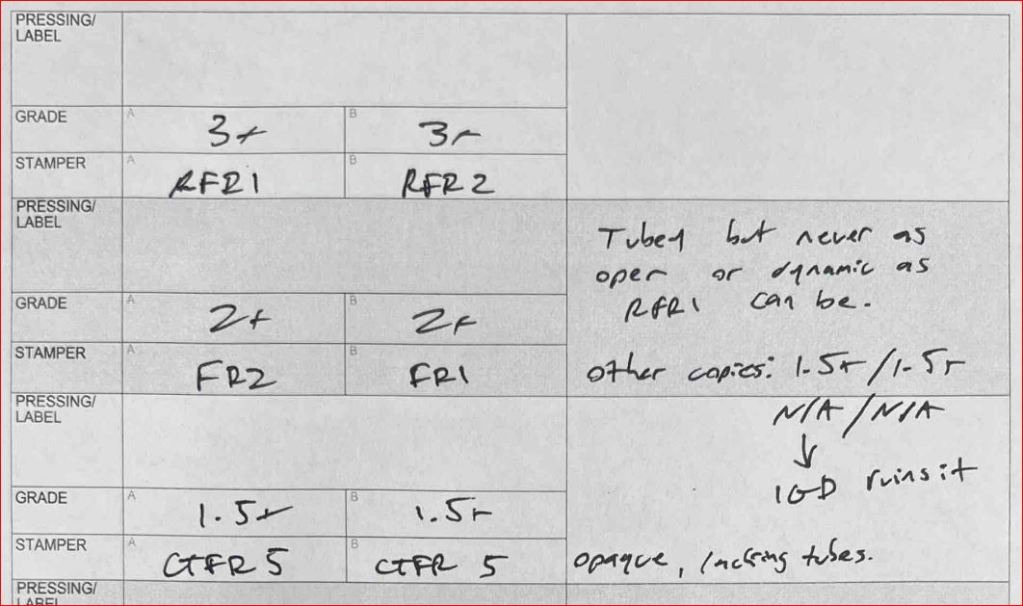 The soundstage, rarely much of a concern to us at here at Better Records but nevertheless instructive in this case, shrinks roughly 25% with the new pressing. Depth and ambience are reduced by about the same amount.